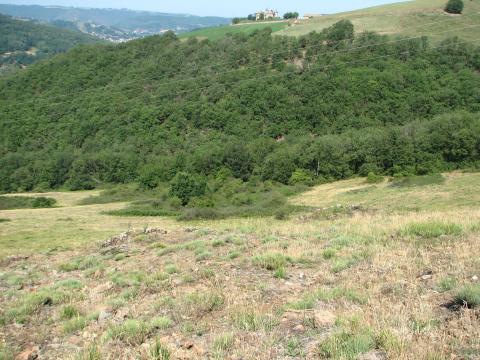 C'est une forêt de chênes peu dense, jeune et généralement pâturée où dominent les chênes tauzins accompagnés de quelques espèces acidiphiles. Le tauzin est une essence pionnière ou postpionnière, de plein soleil, appréciant les sols acides secs et sableux, pauvres en éléments nutritifs (xérophile). La forêt se développe ici non pas sur la serpentinite mais sur les amphibolites qui bordent le site à l’ouest.